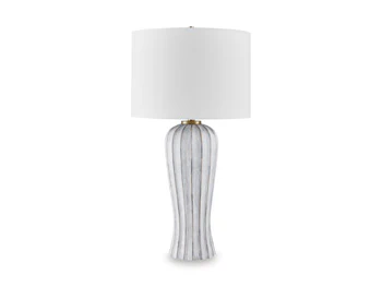 Classic sophistication meets modern sensibility. The gracefully fluted base of this table lamp brings a dynamic feel to the white shade's crisp look. Finished in a versatile antiqued gray, the transitional piece effortlessly bridges casual and contemporary design.